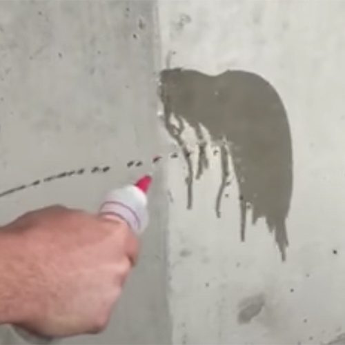 After the building has been cleaned and allowed to dry, a “splash test” should be performed on the walls at a rate of at least 2-3 tests per panel, or a rate agreed upon by the general contractor and owner’s representative. The “splash test” is simply splashing clean water from a bottle, low pressure sprayer or hose, to check to see if the water quickly is absorbed into the concrete. This should not take longer than a few seconds. If the water beads or runs down the wall, the area must be cleaned again and retested to ensure adhesion of the coatings.